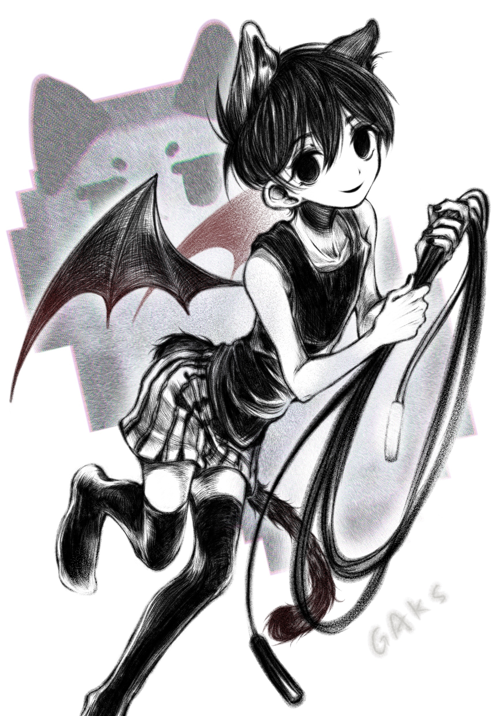 1boyanimal earsantenna hairartist nameblack eyesblack hairblack tank topblack thighhighscat boycat earscat tailcollarbonecolored skindemon boydemon wingsholdingholding jump ropejump ropekemonomimi modelooking at viewerparted lipsshort hairshortssmilesolostriped clothesstriped shortstailtank topthighhighsvertical-striped clothesvertical-striped shortswhite shortswhite skinwings