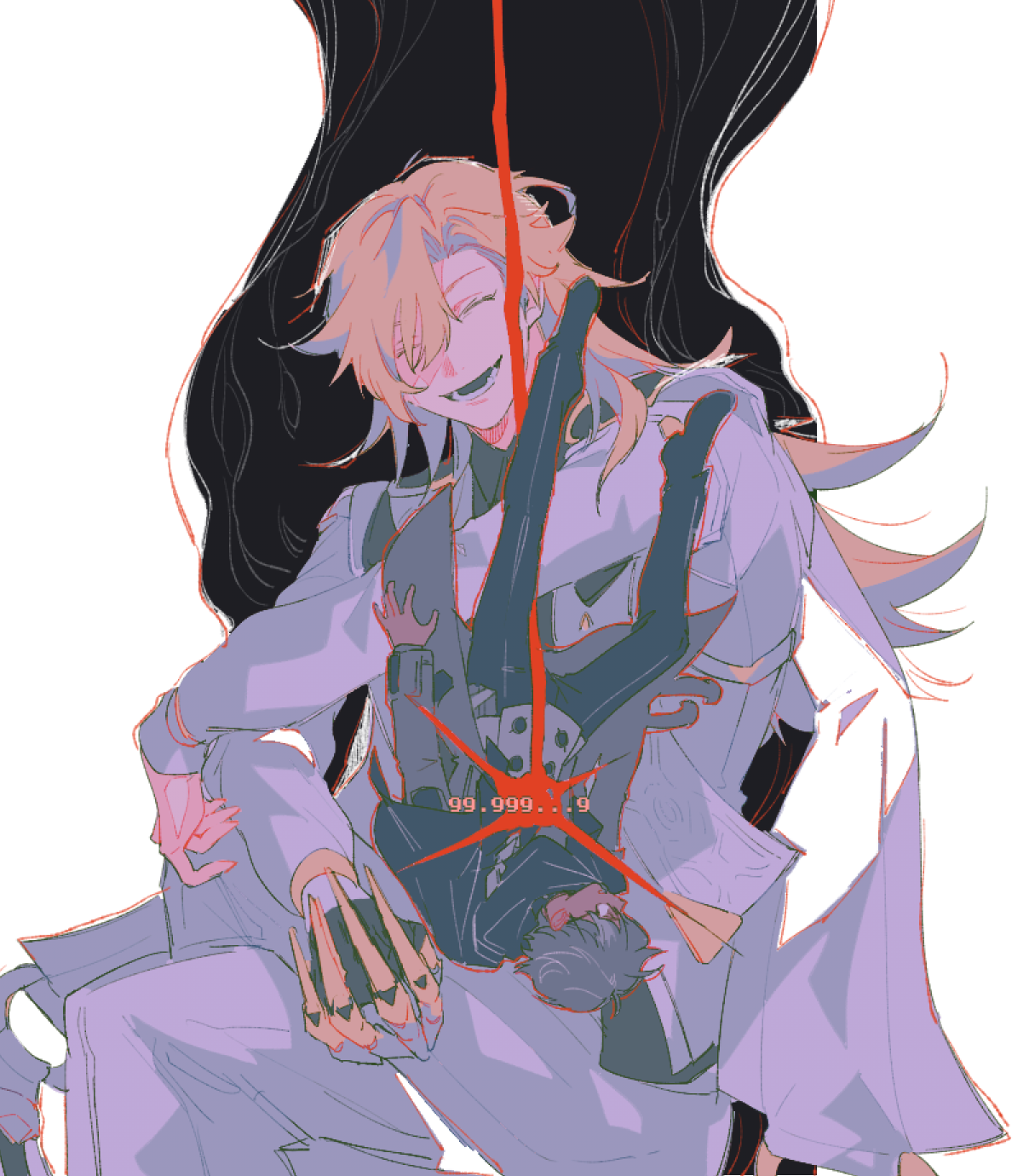 2boysblack glovesblack pantsblonde hairbrown haircoatcrossed legsfacing viewerfallingglovesgrey coathair over one eyejacketlong hairlong sleevesmale focusmultiple boysopen clothesopen coatopen mouthpantsshort hairsingle glovesmileupside-downvestwhite jacketwhite pantswhite vest