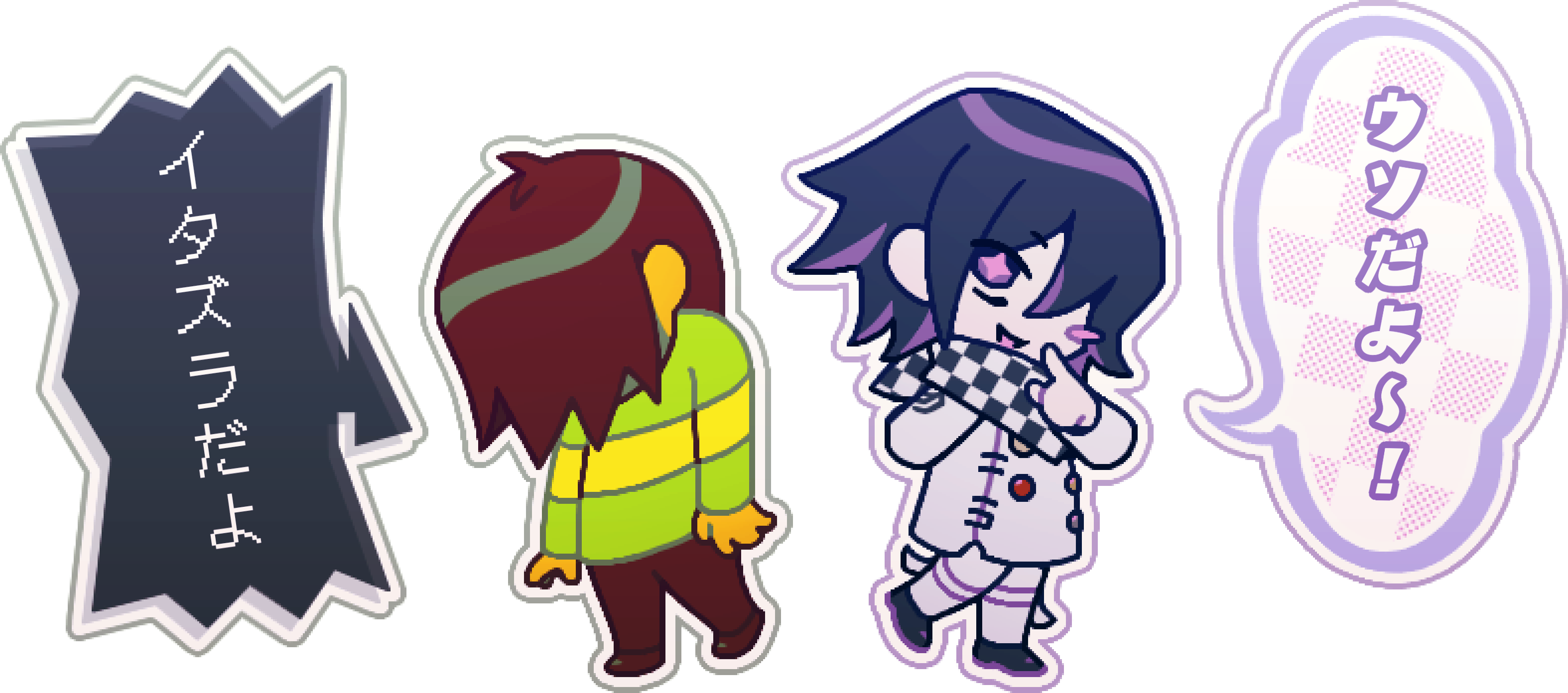 1boy1otherarm behind backarms at sidesblack hairblush stickersbrown hairbuttonscheckered clothescheckered scarfchibichibi onlycrossoverfinger to mouthflipped hairgreen sweaterhair between eyeshair over eyesindex finger raisedlong sleeveslooking at viewermulticolored buttonsopen mouthoutlinepantspurple eyespurple hairscarfshort hairsmilespeech bubblestandingsweatertwo-tone scarfwhite outline