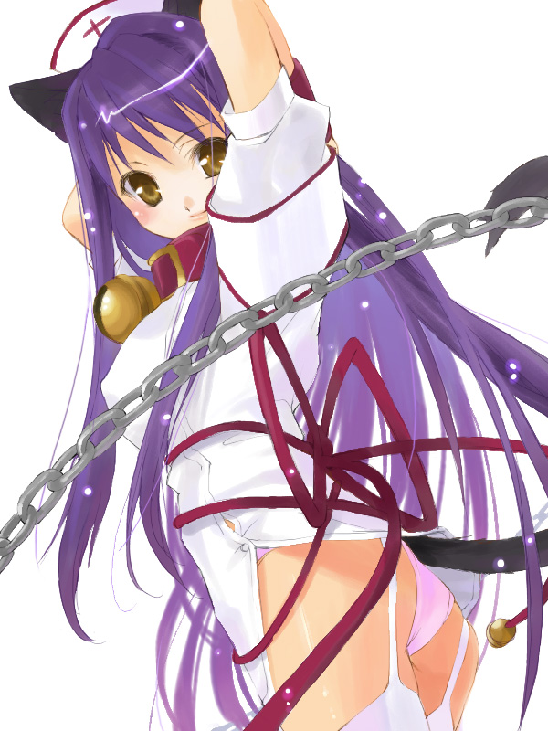 1girlanimal earsbellcat earscat tailchaincollarfemale focusgarter beltneck bellnursepantiesribbonsolotailthighhighsunderwear