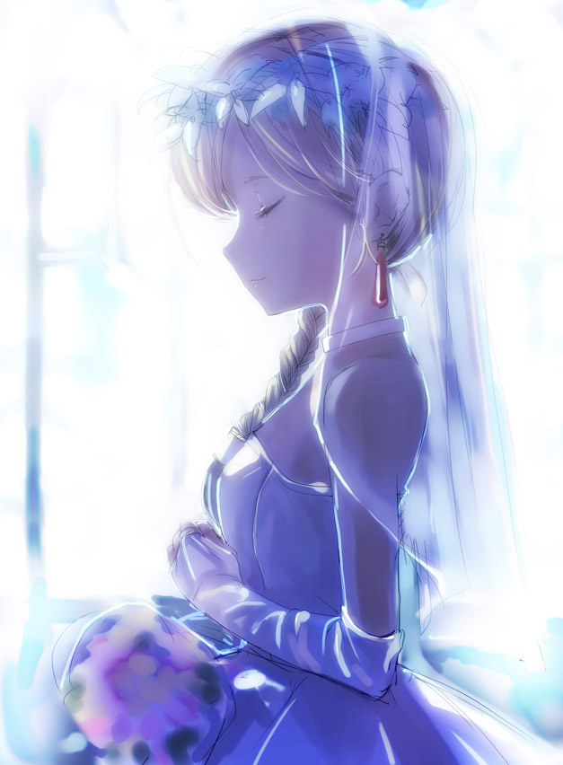 1girlblonde hairbraidbridal veilbrideclosed eyesdressearringselbow glovesfemale focusgloveshead wreathjewelryprofilesoloveilwedding dress