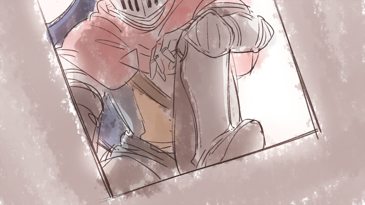 1boyarmored bootsbootscapeeyes out of framehead out of framehelmhelmetknightmale focusred capeskylightsolosquatting