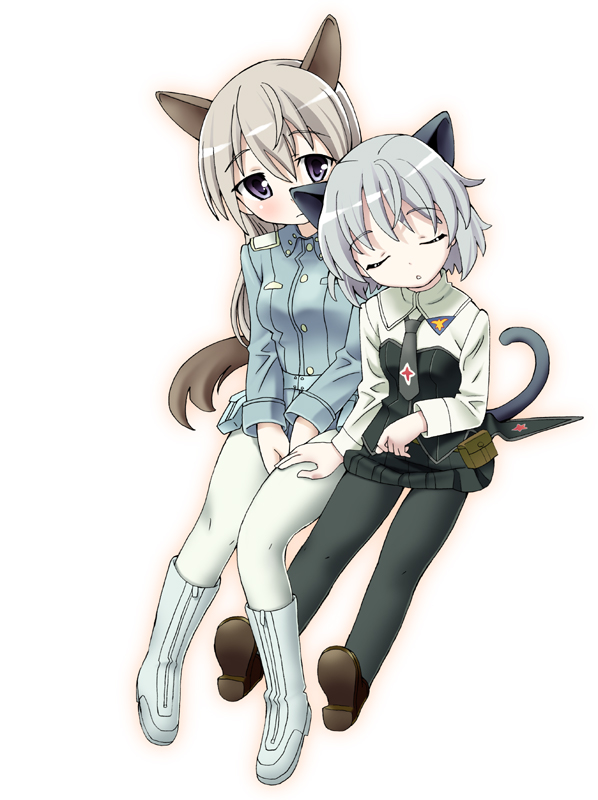 00s2girlsanimal earsblack pantyhoseblushclosed eyesmultiple girlspantyhosesleepingtailwhite pantyhose
