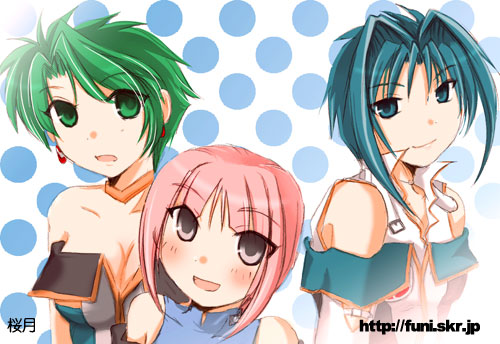 yumineko, belle (summer skies) (zenless zone zero), belle (zenless zone zero), ukinami yuzuha, ukinami yuzuha (tanuki in broad daylight), zenless zone zero, 3girls, animal ears, blonde hair, blue hair, braid, breasts, green eyes, large breasts, looking at viewer, low twintails, medium breasts, multiple girls, official alternate costume, official alternate hairstyle, one-piece swimsuit, orange shorts, pink one-piece swimsuit, puffy cheeks, rabbit ears, rabbit girl, rabbit tail, red eyes, red hair, shirt, shorts, swimsuit, tail, twin braids, twintails, two side up, white background, white one-piece swimsuit, white shirt, yellow eyes