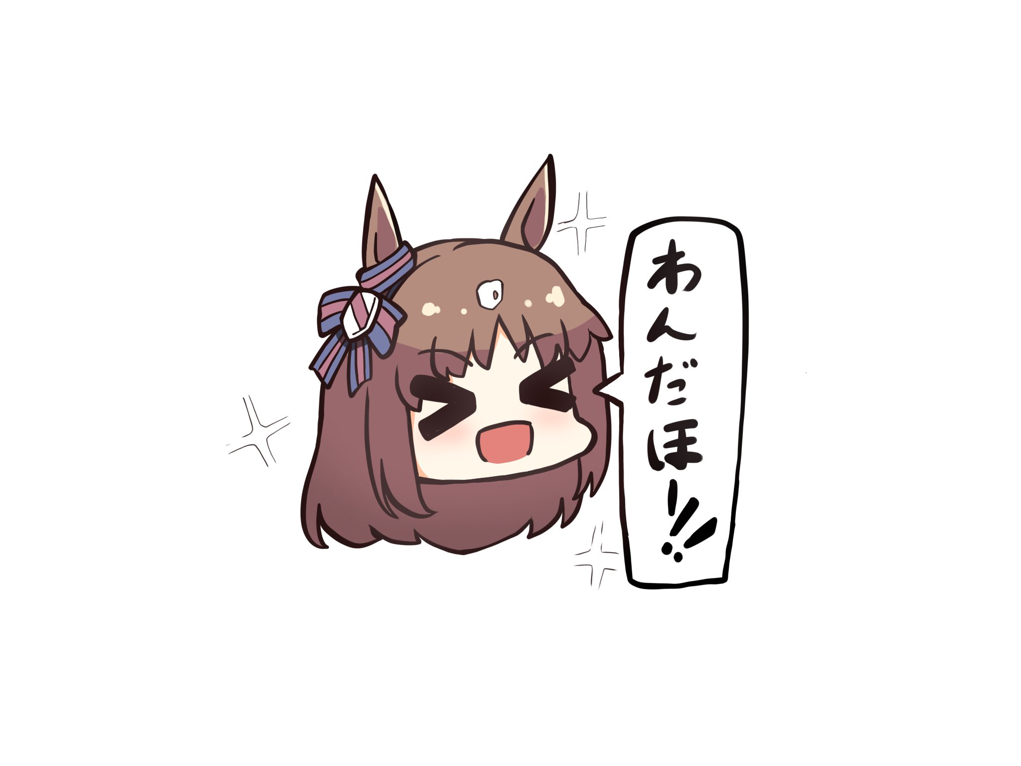 :d1boy1girlanimal earsblushbowbrown hairchibiclosed eyesear bowfacing viewerhead onlyhorse earslong hairmulticolored hairopen mouthsimple backgroundsmilesolostriped bowtwo-tone hairwhite backgroundwhite hairxd