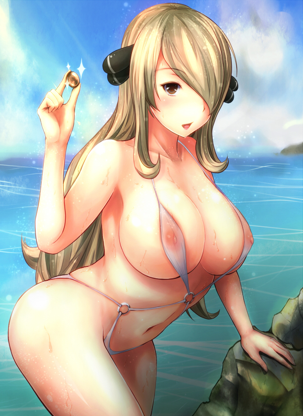 bikiniblonde hairfemalefemale onlyFlag for Deletionhair ornamenthumanpokemonsee throughsee-through bikinisling bikinisolo