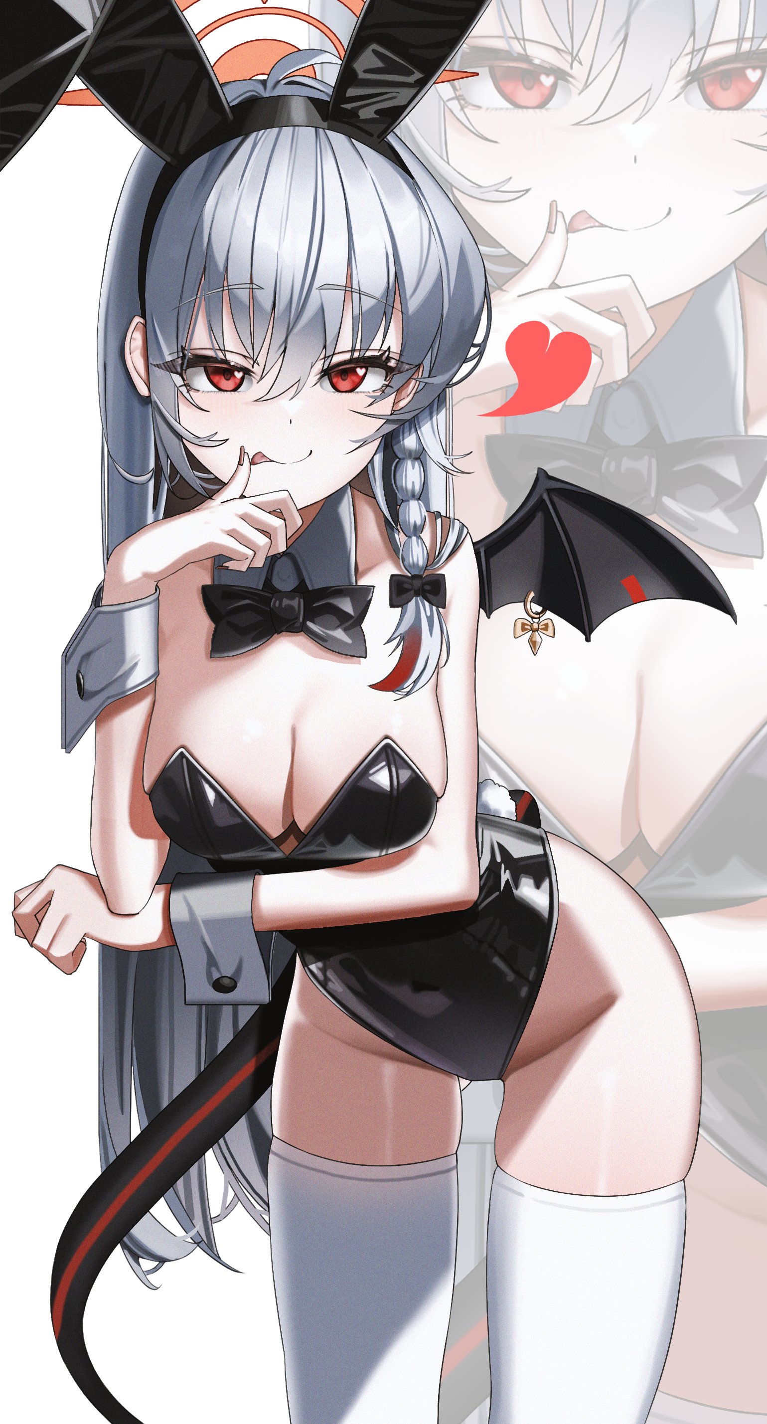 1girlalternate costumeanimal ear hairbandanimal earsbare shouldersblack hairbandblack leotardbreastscovered naveldemon girldemon taildemon wingsfake animal earshairbandlarge breastsleotardlooking at viewerorange eyesplayboy bunnyrabbit ear hairbandrabbit earssolotailthighhighswhite backgroundwhite hairwhite thighhighswings
