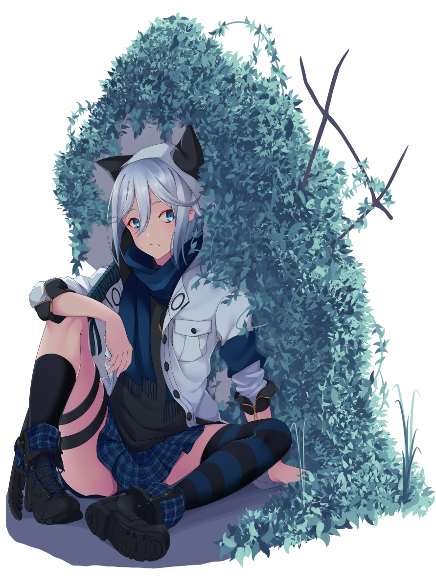 1girlanimal ear hoodarmbandblack bootsblack pantiesblack shirtblack socksblack thighhighsblue armbandblue eyesblue hairblue scarfblue skirtblue thighhighsbootsdated commentarydouble-parted bangsfake animal earsfull bodygradient hairgrasshair between eyeshoodjacketknee upkneehighslong sleeveslooking at viewermedium hairmulticolored hairopen clothesopen jacketpantiespantyshotplaid clothesplaid skirtplantpleated skirtscarfshadeshadowsheathshirtsidelockssingle kneehighsingle socksingle thighhighsittingskirtsockssolostriped clothesstriped thighhighsthigh strapthighhighsunderwearwhite backgroundwhite hairwhite jacket