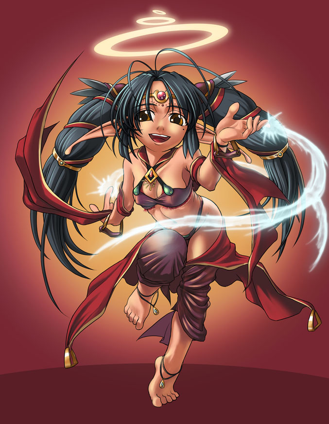 michael f91, micaiah (fire emblem), fire emblem, fire emblem: radiant dawn, nintendo, 1girl, blush, bow, breasts, breasts squeezed together, brown eyes, elbow gloves, female focus, flat chest, gloves, half updo, long hair, nipples, small breasts, solo, topless frame, upper body