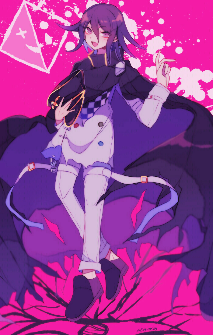 wazawogi (wzog), azazel (azazel-san), sangokushi taisen, yondemasu yo azazel-san., non-web source, 1boy, 1girl, = =, animal ears, belt, black belt, black hair, black jacket, black necktie, black pants, blush, bob cut, breasts, brown eyes, brown hair, clenched hand, collarbone, collared shirt, cowboy shot, demon, fang, fire, formal clothes, hair between eyes, hand on own hip, horns, jacket, jewelry, logo, long sleeves, looking at viewer, necklace, necktie, open clothes, open jacket, open mouth, pants, raccoon ears, ryuki (sangokushi taisen), shirt, short hair, sidelocks, skin fang, skull necklace, small breasts, smile, standing, suit jacket, tsurime, upper body, v-shaped eyebrows, white shirt, wings