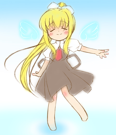 00s1girlbarefootblonde hairchibiclosed eyesfemale focusfull bodylong hairschool uniformsolostandingvery long hair