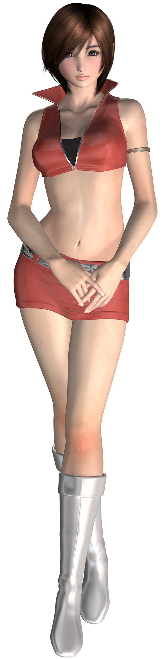1girl3darmbandbeltbootsbrown eyesbrown haircrop topfemale focusmidriffminiskirtnavelpencil skirtskirtsolo