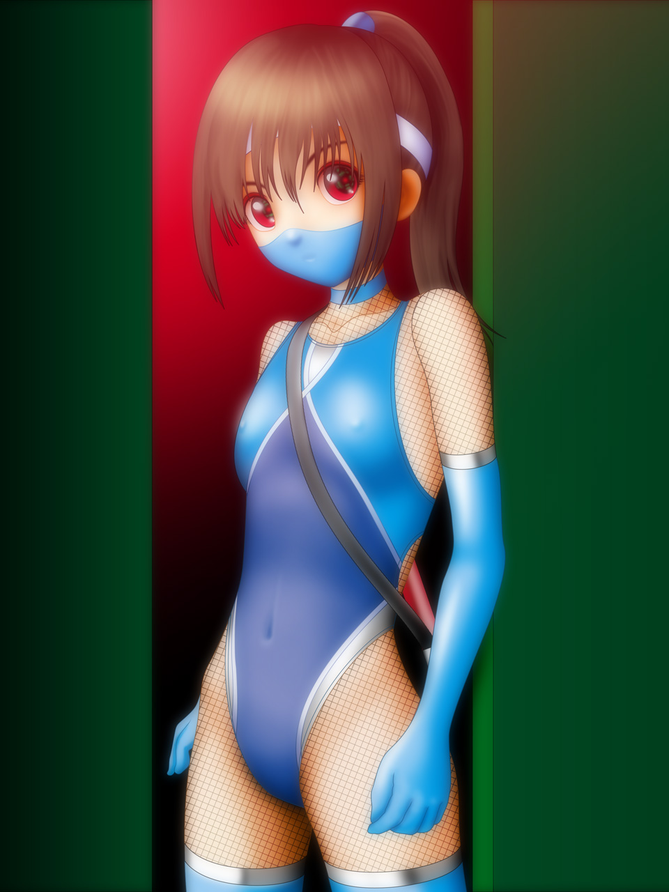 hitou nami, idolmaster, sayonara zetsubou sensei, striped, lowres, brown eyes, brown hair, midriff, parody, pointing, short hair, shorts, smile, thighhighs, wink