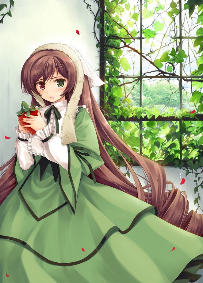 akachouchin, shimonkin, futaba channel, rozen maiden, animated, animated gif, lowres, 00s, 1girl, eating, female focus, food, fruit, holding, holding food, holding fruit, lemon, solo
