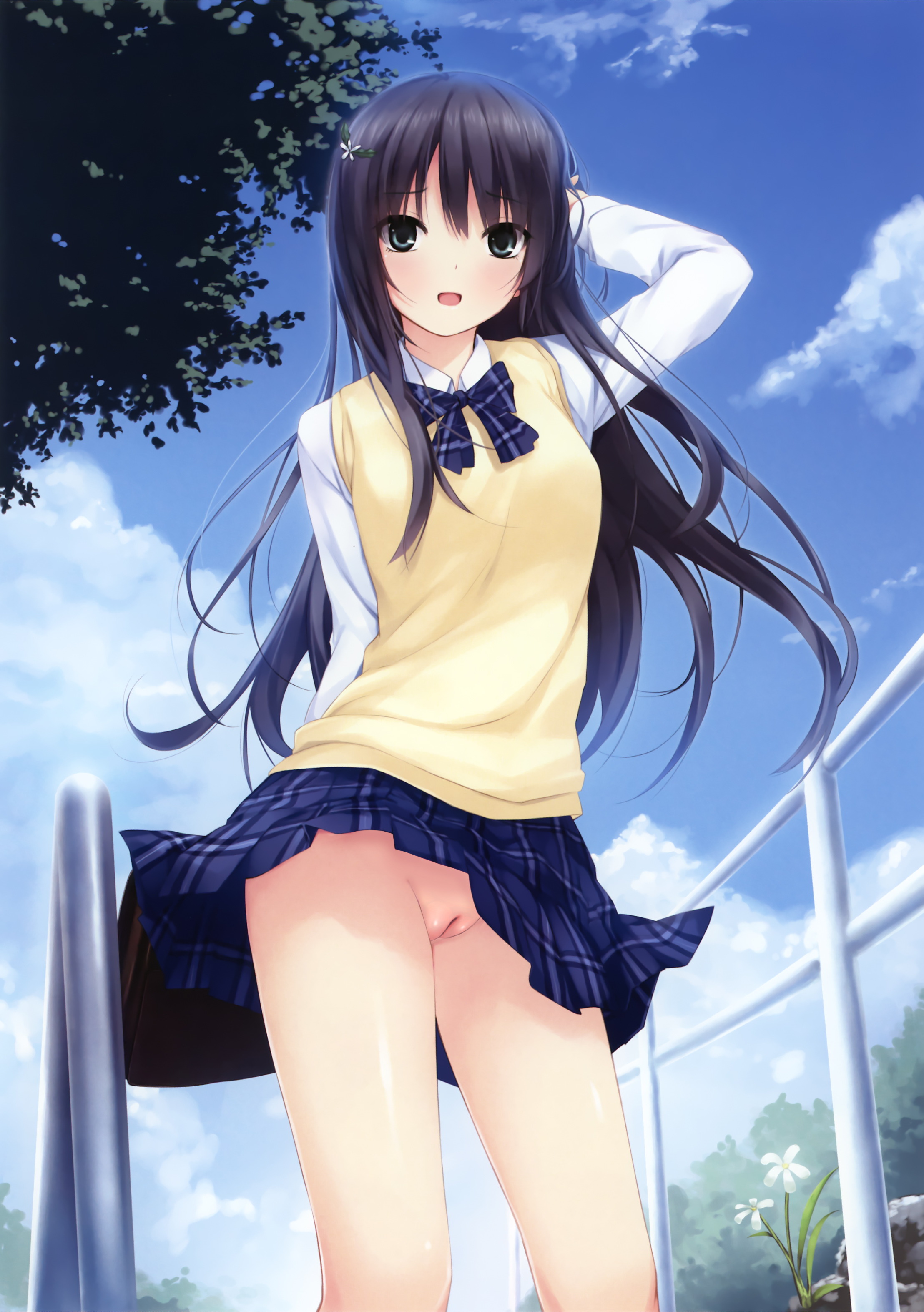 bagblack hairbowtiecardigandress shirtfemaleFlag for Deletionlong hairlooking at viewerno pantiesopen mouthpleated skirtpussyuncensoredvery long hair