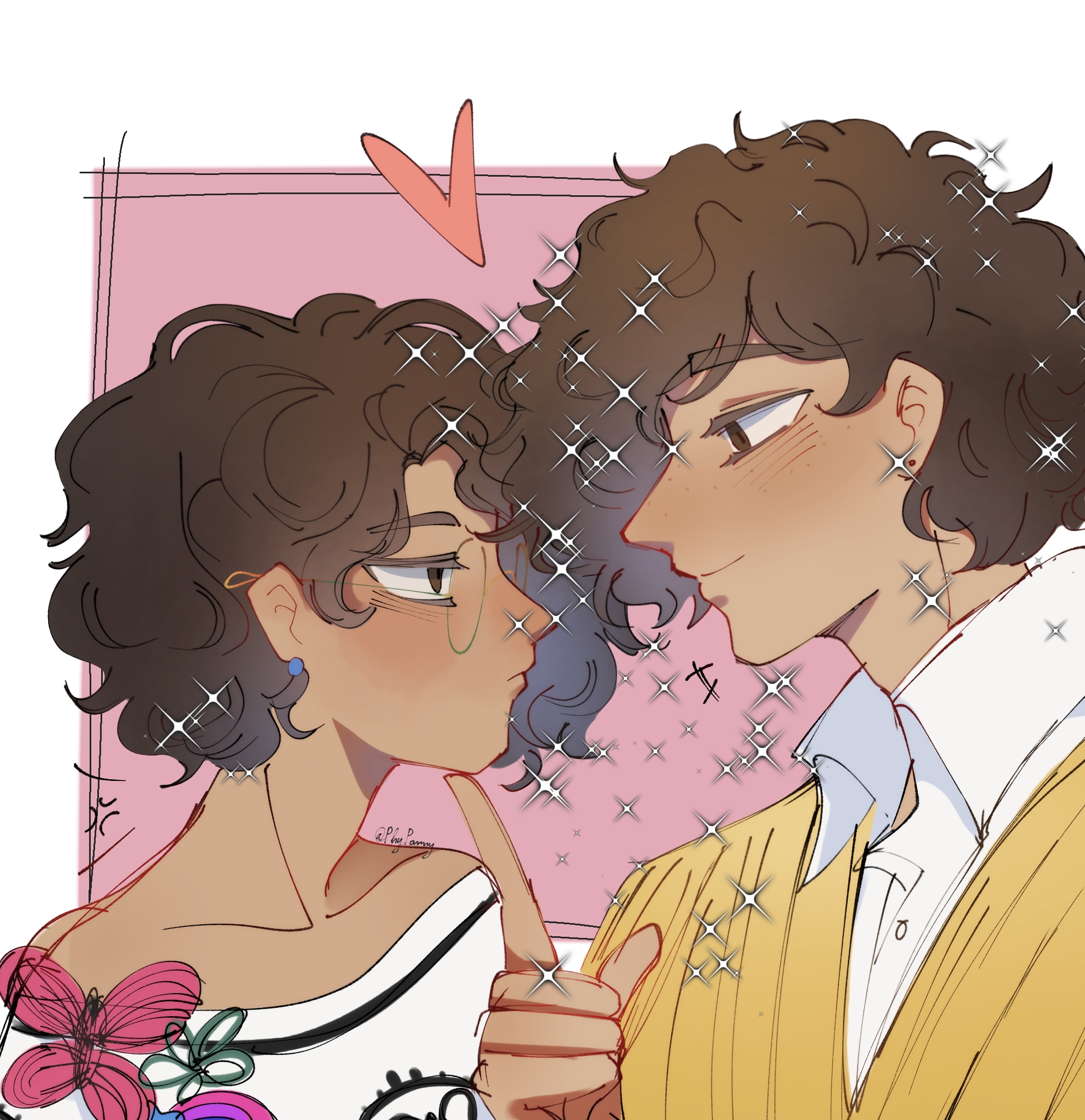 1boy1girlafroana-javelinebrown eyesbrown haircolombian clothescurly hairdark skindark-skinned femaledark-skinned maleearringsglassesgreen-framed eyewearhourglass printjewelryponchoshirtshort hairsimple backgroundwhite shirtyellow poncho