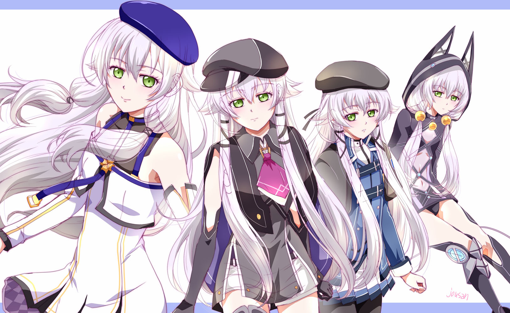 4girlsanimal ear hoodartist namebare shouldersberetblack hatblack thighhighsblue borderblue hatborderbreastscapeletdetached sleevesdouble-parted bangsdressfake animal earsflat capfloating hairgreen eyeshair between eyeshathoodhood uphoodiejacketlong hairlong sidelockslooking at viewermultiple girlsschool uniformshortssidelockssimple backgroundsmall breastssmilethighhighsthors military academy branch campus uniformtwintailstwo-tone backgroundupper bodywhite backgroundwhite hair