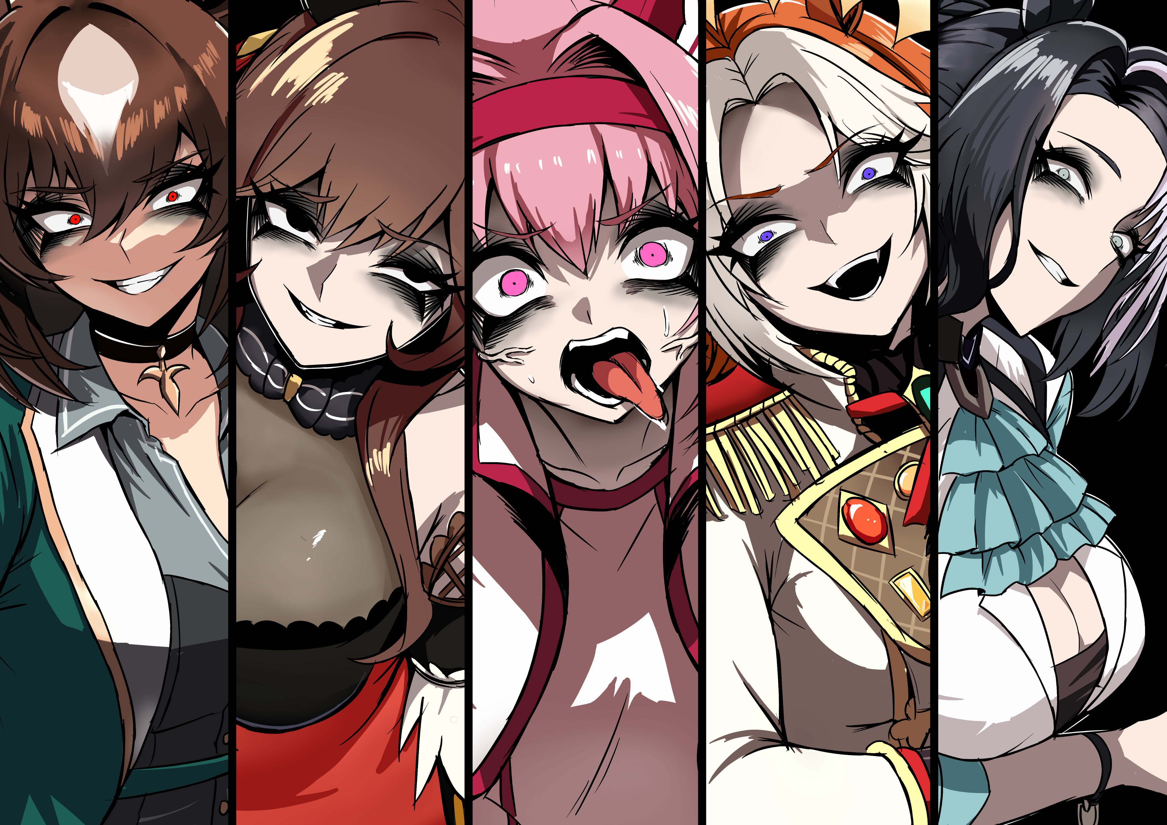 5girlsanimal ear fluffanimal earsblonde hairlong hairlooking at viewermultiple girlsshirtsmiletail