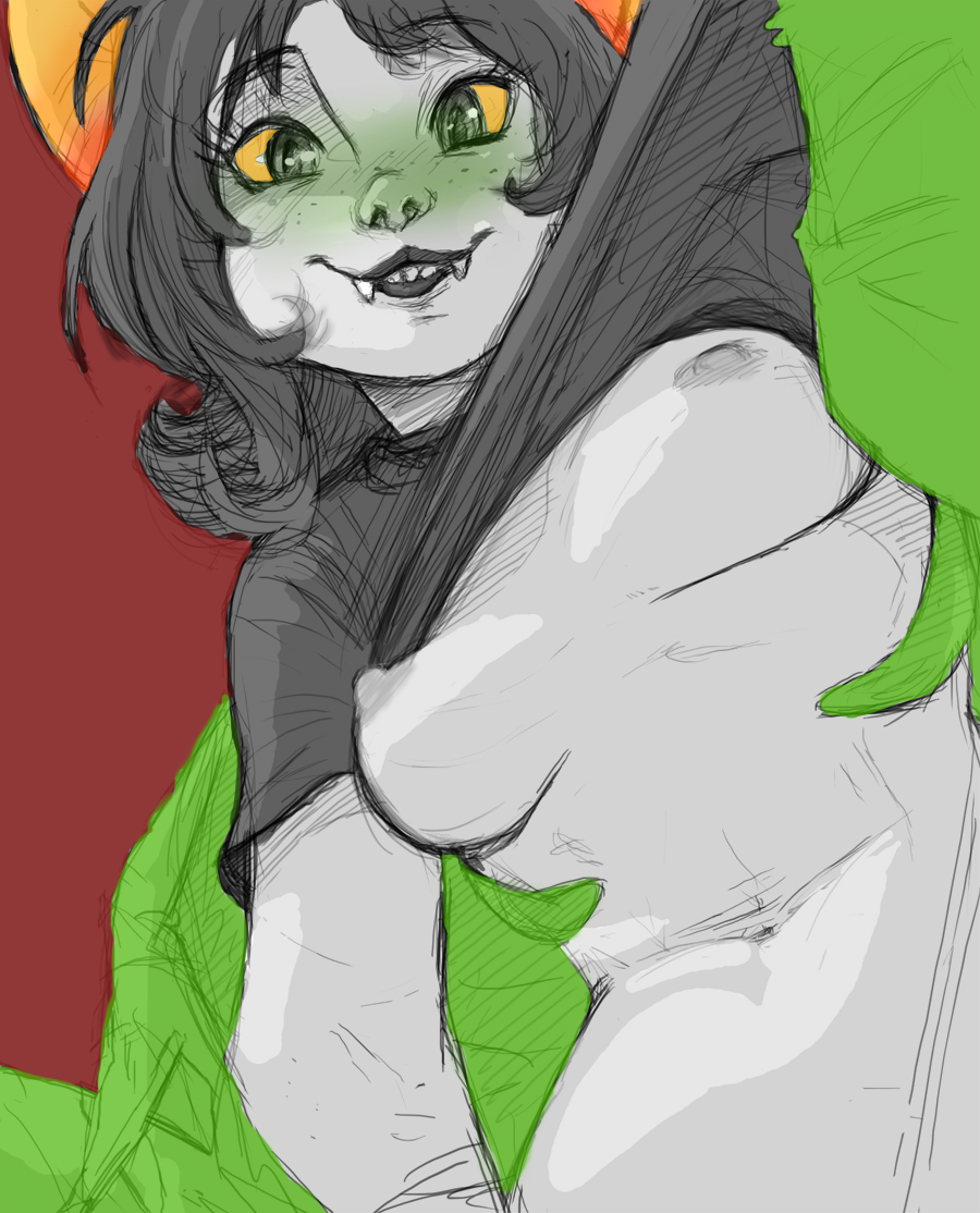 black hairblushbreastsfemalefemale onlyFlag for Deletiongray skinhornsshirt liftshort hairsmilesolouncensored