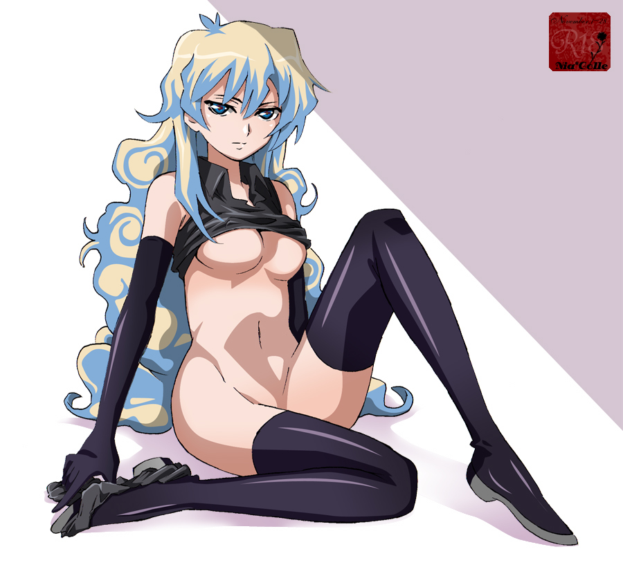 00s1boy1girlblack bootsblack glovesblack shirtblack thighhighsblonde hairblouseblue eyesblue hairbootsbottomlessbreastscleavageclothes liftcollared shirtcross-shaped pupilsdark personaelbow glovesexpressionlessfemale focusfull bodygloveshalf-closed eyeslarge breastslong hairmatching hair/eyesmulticolored hairnavelno brano pantiespantiespanties around legseriousshirtshirt liftsittingsolosymbol-shaped pupilsthigh bootsthighhighstwo-tone hairunderboobunderwearvery long hair
