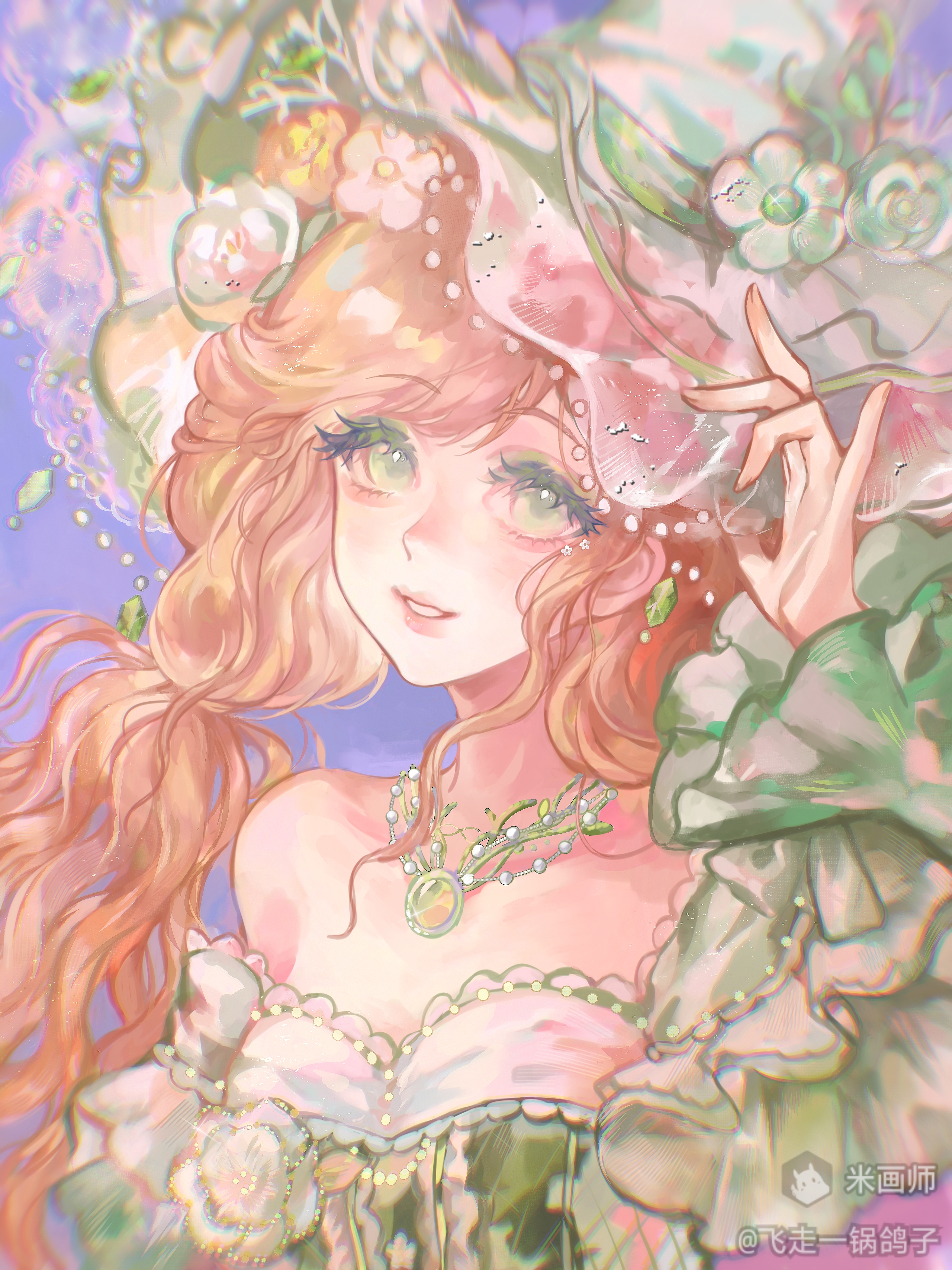 1girlartist namebead necklacebeadsblue sleevesbreastsbrown haircenter frillscleavagedaydresseyelasheseyeshadowflowerfrilled sleevesfrillsgemgreen dressgreen eyesgreen eyeshadowgreen flowergreen gemstonegreen hatgreen rosehair beadshair flowerhair ornamenthand on headwearhappyhathat flowerjewel under eyejewelrylacelace trimlace-trimmed dresslong hairlong sleeveslow twintailsmakeupmihuashi logomihuashi usernamenecklaceoff shoulderoff-shoulder dressorange floweroutdoorsrainfall & blossoms (infinity nikki)rosesidelockssolotwintailsupper bodywatermarkwavy hairwhite flowerwide sleeveswitch hat