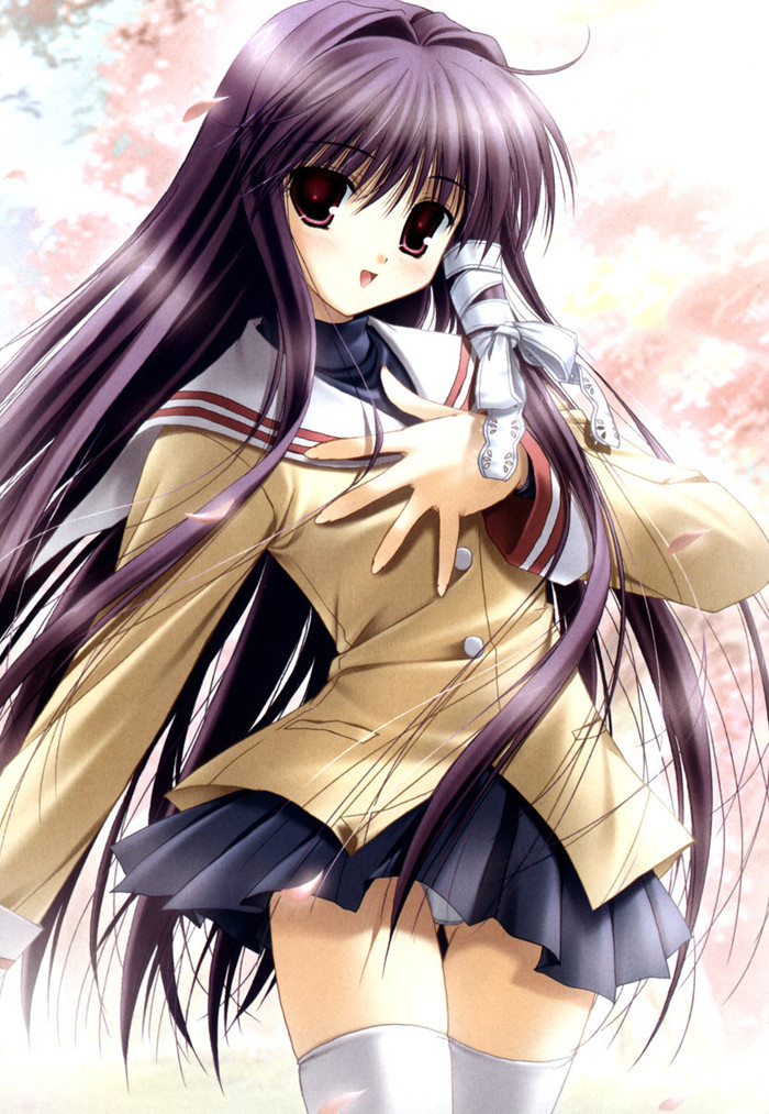 00s1girlcherry blossomsfemale focushair ribbonlong hairpantiespantyshotpurple hairred eyesribbonschool uniformsolothighhighsunderwearvery long hairwhite thighhighswindzettai ryouiki