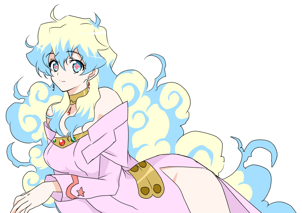 00s1boyaged upbare shoulderschokercross-shaped pupilsdressearringsjewelrylong hairmulticolored hairpink dresssolosymbol-shaped pupilsvery long hair