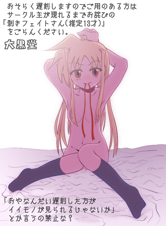 00s1girladjusting hairarms upblack socksblonde hairblushbrown eyesfemale focusfull bodykneehighsknees together feet apartlong hairlooking at viewernudesittingsockssolotext focusthighhighstying hairvery long hair