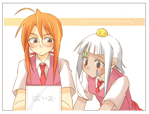 00s2girlsahogeanimalanimal on headbirdbird on headdark skindark-skinned femaleglassesmultiple girlson headorange hairschool uniformwhite hair