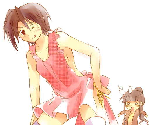 00s2girlsapronarmpitsbare armsbare shouldersbikiniblack hairblunt bangsblushbreastsbrown eyesbrown haircollarbonefacing viewerhand on own hiphand uphappyhigh ponytailleaning forwardlong hairlooking at viewermedium breastsmultiple girlsnaked apronopen mouthpink apronponytailside ponytailside-tie bikini bottomsideboobsimple backgroundstandingsurprisedsweatdropswimsuitthighhighstonguetongue outwhite backgroundwide-eyed