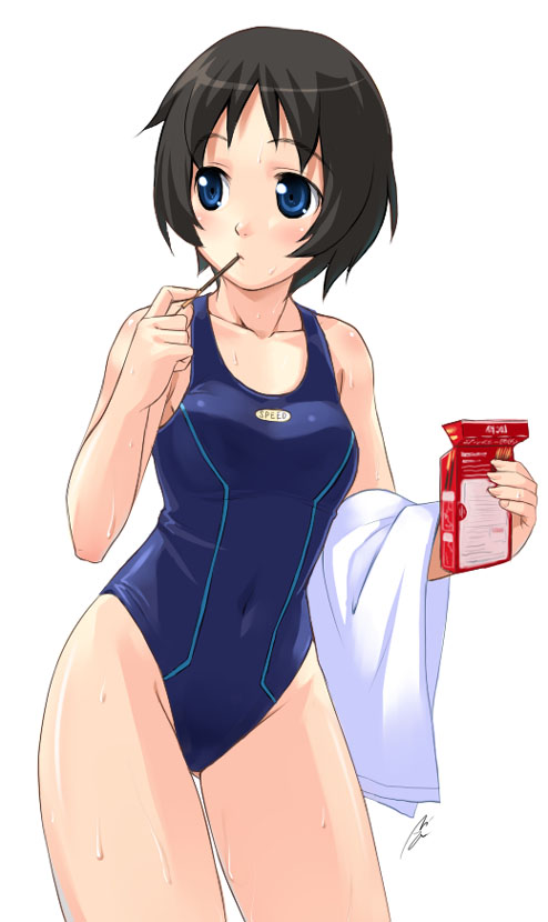 archer (fate), izumi konata, fate/stay night, fate (series), lucky star, translated, 1girl, archer (fate) (cosplay), cosplay, female focus, full body, kanshou & bakuya (fate), mole, mole under eye, parody, solo, sword, weapon, zoom layer