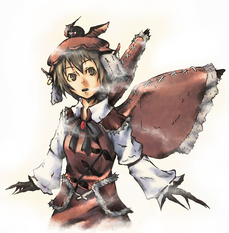 1girlanimal earsbreathbrown eyesbrown hairclawscoldfemale focushatshort hairsolowingswinter clothes