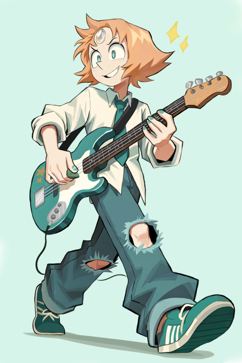 1girlalternate costumefawkenforehead jewelgemgem (steven universe)guitarholdingholding guitarholding instrumentinstrumentpearl (gemstone)pearl (species) (steven universe)pointy noseshirtshort hairsolo