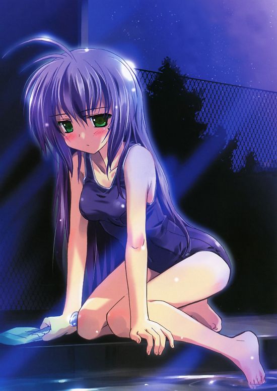 00s1girlahogearm supportbarefootblushfemale focusgreen eyeskneelingnightone-piece swimsuitpoolpoolsidepurple hairschool swimsuitsoloswimsuitwet