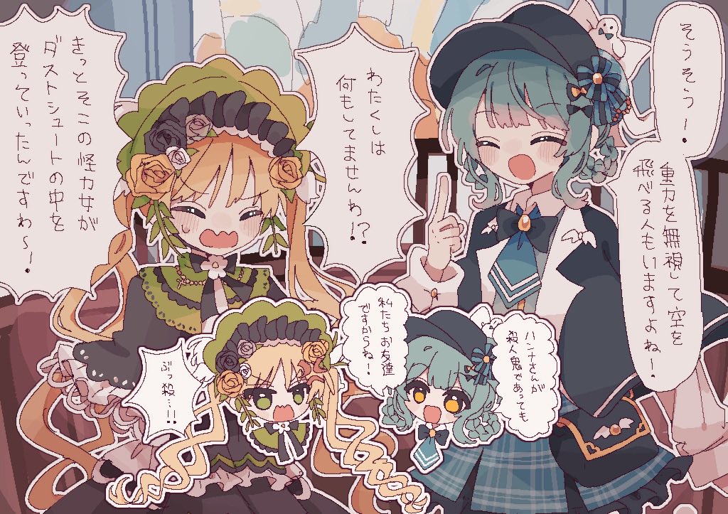 2girlsbagbird hat ornamentblack bagblack capeletblack dressblack flowerblack hatblack roseblonde hairblue hairblue necktieblue skirtbonnetbraidbraided hair ringsbrown flowerbrown rosecapeletdeerstalkerdressflowerfrilled dressfrillsgreen eyeshair ringshatlong hairmagical girlmessenger bagmultiple girlsnecktieroseshoulder bagskirttoo manytoo many frillstwintailsvery long hairwhite flowerwhite roseyellow eyesyellow floweryellow rose