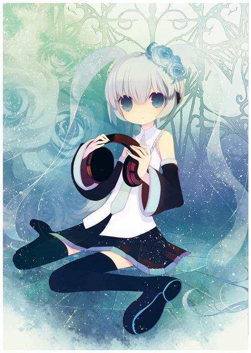 3kan noka, blue archive, absurdres, highres, translation request, 1girl, bow, bowtie, braid, breast suppress, breasts, cheerleader, green halo, grey hair, hair bow, halo, long hair, miyo (blue archive), simple background, skirt, solo, white background, white bow, white skirt