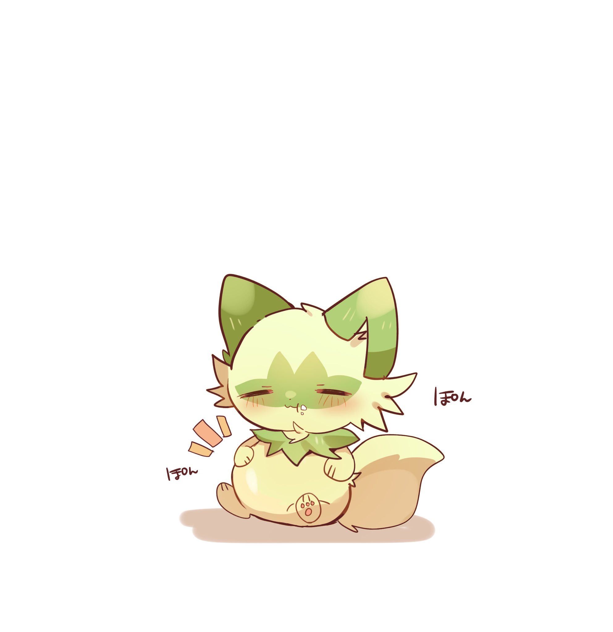 blushclosed eyesclosed mouthfoodfood on facefull bodyfull stomachno humanspokemon (creature)pokemon focussittingsolo