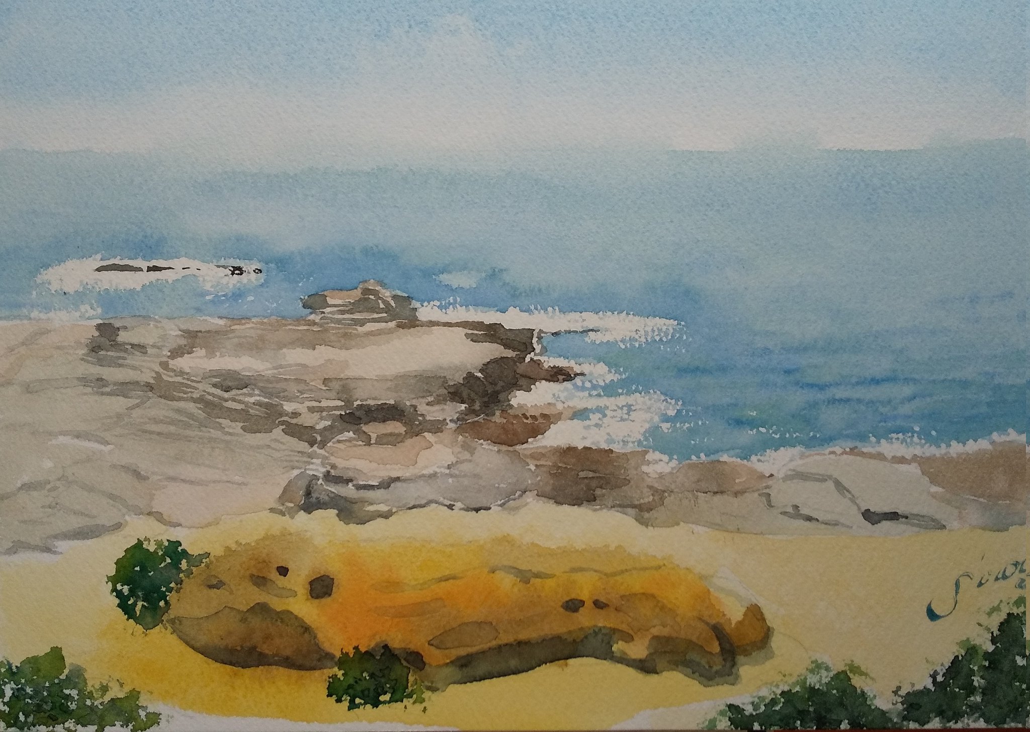 akusamu, han youyou (azur promilia), azur promilia, absurdres, commentary request, highres, 1girl, :d, bare shoulders, black dress, black thighhighs, blue sky, border, breasts, brown hair, chinese clothes, cleavage, dress, fang, floating hair, from side, gold trim, hair between eyes, hair bun, hair ornament, halterneck, hand up, head tilt, inset border, knee up, large breasts, long sleeves, looking at viewer, obi, off-shoulder dress, off shoulder, open hand, open mouth, purple eyes, sash, single side bun, sitting, skin fang, skirt, sky, smile, solo, tassel, tassel hair ornament, thighhighs, waving, white border, white skirt, wide sleeves