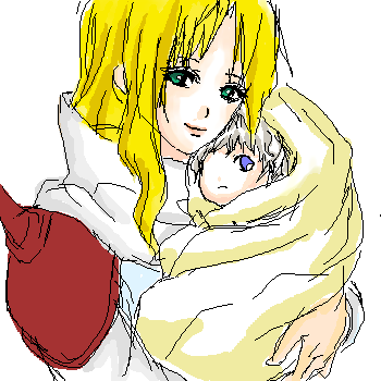 1990s (style)age differencebabyblonde hairblue eyesgreen eyesmother and babymother and sonoekakiretro artstyle