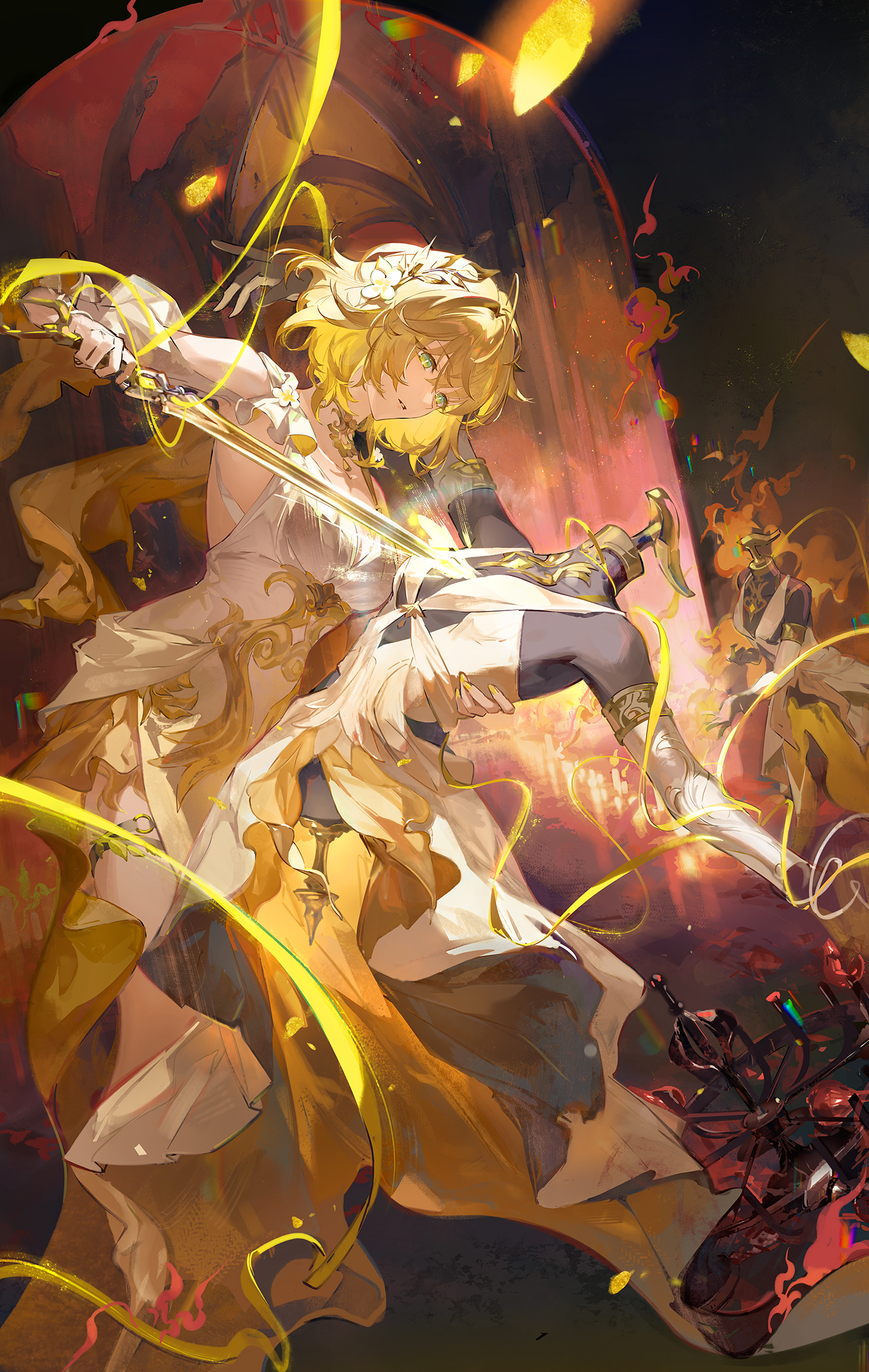 1girlancient greek clothesbare shouldersblonde hairbreast tattoobreastscleavageclosed mouthdressflowergarmentmaker (honkai: star rail)greco-roman clothesgreen eyeshair between eyeshair flowerhair ornamenthead wreathhigh heel sandalsjewelrylarge breastslaurel crownlooking at viewermannequinparted lipssandalsshort hairsolotattoowhite dressyellow nails