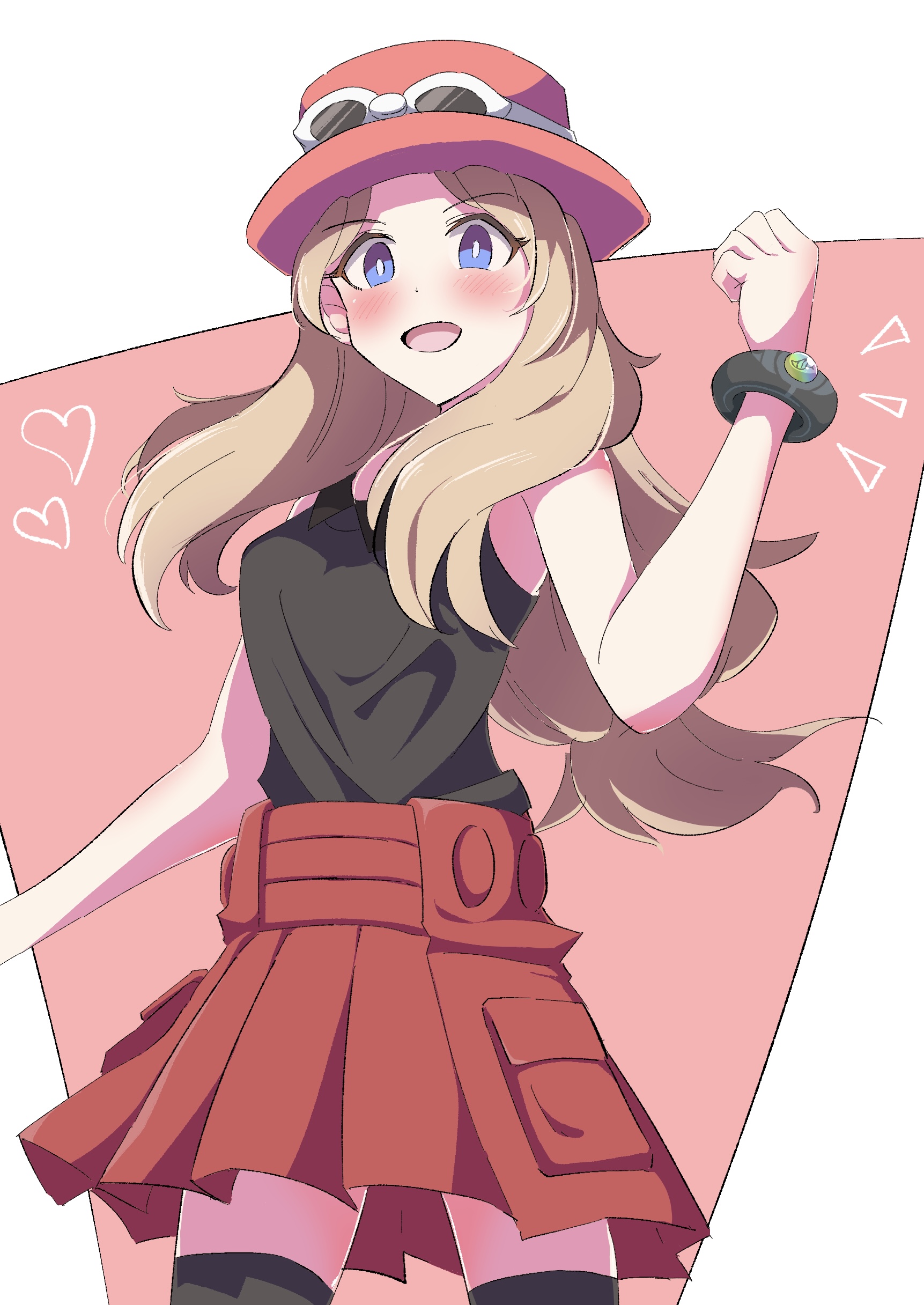 :d1girlblack shirtblack thighhighsblonde hairblue eyesblushbreastscowboy shotfemale focusglasseshathearthigh-waist skirtlong hairlooking at viewermega ringopen mouthpink backgroundporkpie hatred hatred skirtshirtskirtsleevelesssleeveless shirtsmall breastssmilesolostandingthighhighswhite background