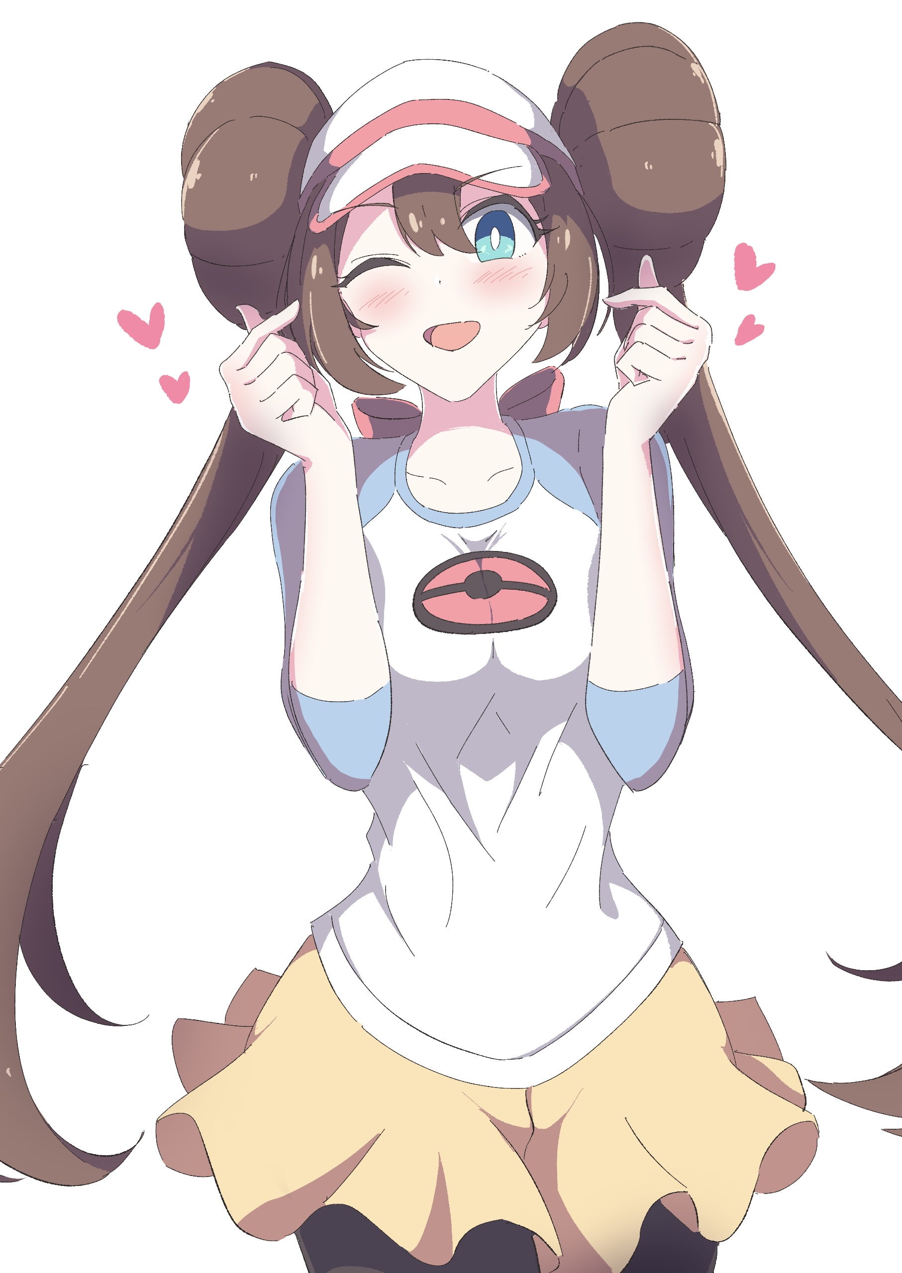 :d1girlblack pantyhoseblue eyesblushbreastsbrown haircowboy shotdouble bunfemale focushair between eyeshair bunheartlong hairlooking at viewerone eye closedopen mouthpantyhosepoke ball printraglan sleevesshirtshortssidelockssimple backgroundsmall breastssmilesolostandingtwintailsvery long hairvisor capwhite backgroundwhite shirtwinkyellow shorts