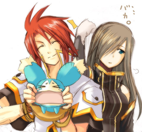 00s1boy1girlblue eyesbrown hairclosed eyesgloveshair over one eyelong hairmouth pullred hairsmile