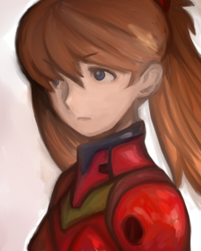 1girlblue eyesclose-upfemale focusgradient backgroundlong hairmecha pilot suitorange hairplugsuit (evangelion)red hairsolotwintails