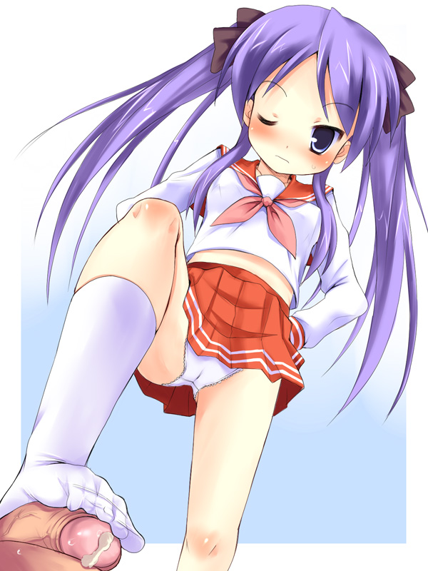 satou shouji, akimoto komachi, precure, yes! precure 5, 00s, 1girl, censored, chain, collar, cum, green eyes, green hair, handjob, hetero, leash, leash pull, library, mosaic censoring, panties, pantyshot, penis, purple skirt, school uniform, skirt, solo focus, underwear, upskirt