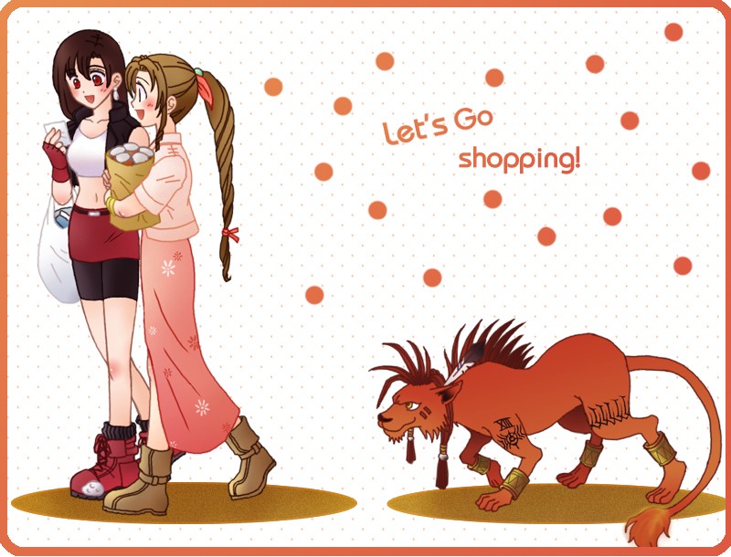 1990s (style)2girlsblack hairbraidbrown hairdressenglish textlong dresslong hairmultiple girlspink dressred eyesretro artstyleshopping