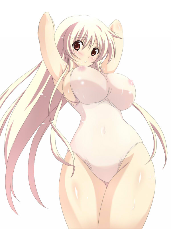 1girlarmpitsarms behind backbreastscurvyfemale focushuge breastslong hairnavelnipplesone-piece swimsuitred eyessee-through clothessoloswimsuitvery long hair