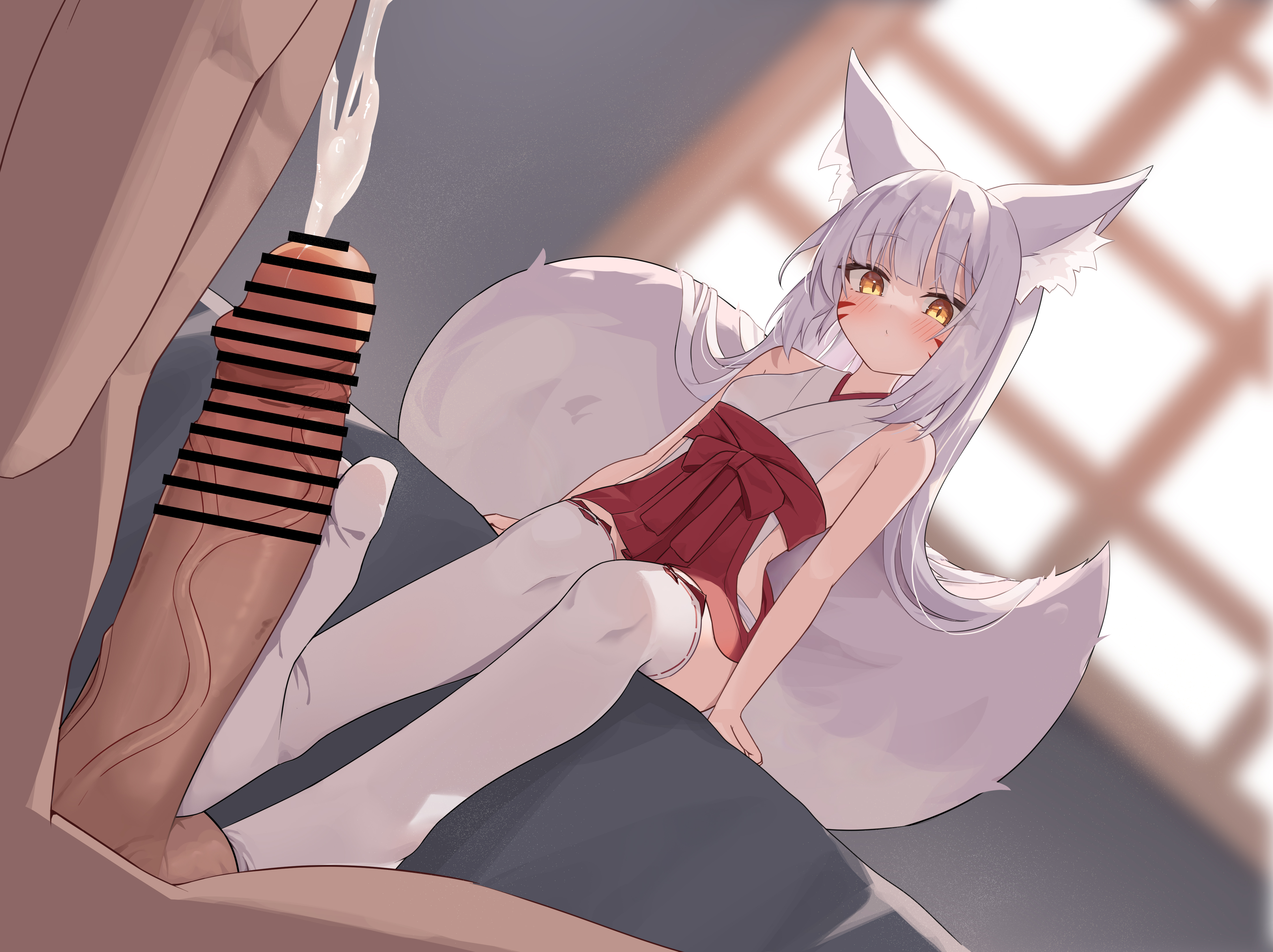1boy1girlanimal ear fluffanimal earsbar censorblushbreastscensoredclosed mouthclothed female nude maleclothing cutoutcumejaculationerectionfeetfootjobfox earsfox girlfox tailgrey hairhakamahakama short skirthakama skirtheterohip ventindoorsjapanese clotheslong hairmikonudepenisred skirtsittingskirtsmall breastssolestabitailtesticlesthighhighstoesveinsveiny peniswhite thighhighsyellow eyeszettai ryouiki