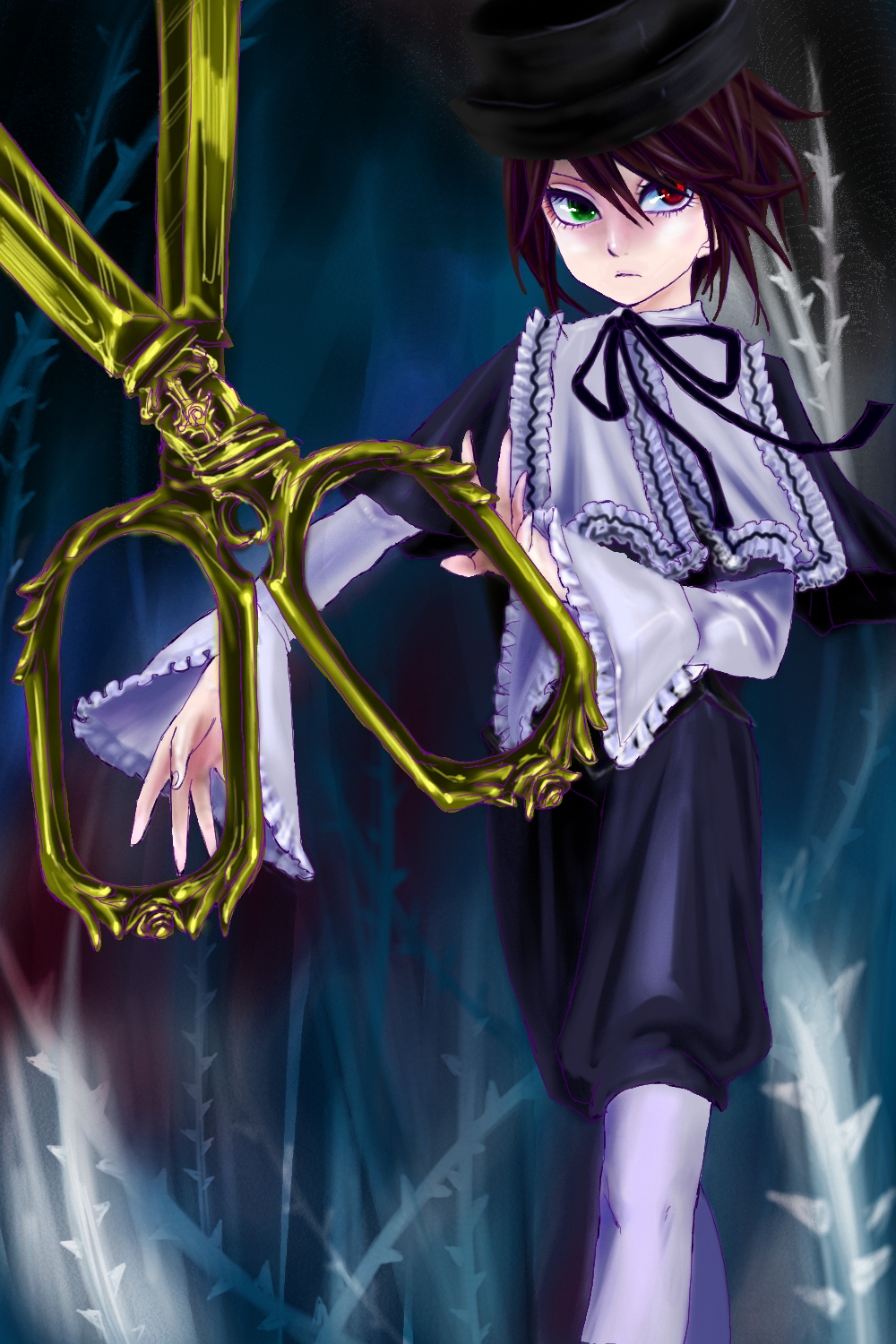 suigintou, rozen maiden, third-party edit, 00s, 1girl, albino, blush, brown background, female focus, hat, long hair, nazi, pink eyes, puffy sleeves, smile, solo, white hair