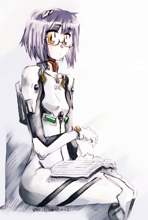 1girlayanami rei (cosplay)bookbreastscosplayfemale focusglassesmecha pilot suitplugsuit (evangelion)short hairsmall breastssoloyellow eyes